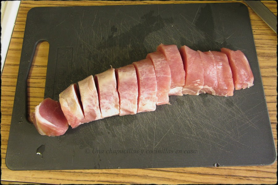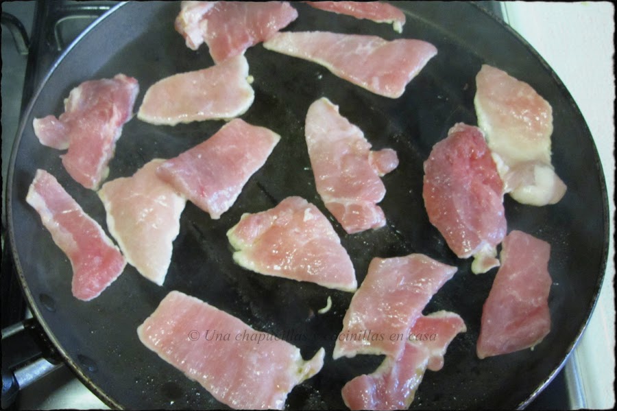 Como también tenía unas tajadas de lomo de cerdo frescas, las trocee y las sellé también.