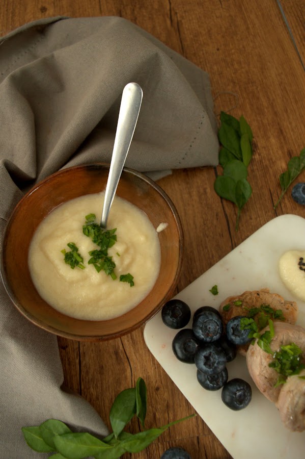 Ponemos la cebolla con el caldo que quede en el vaso de la batidora y batimos hasta que nos quede una salsa muy fina.
