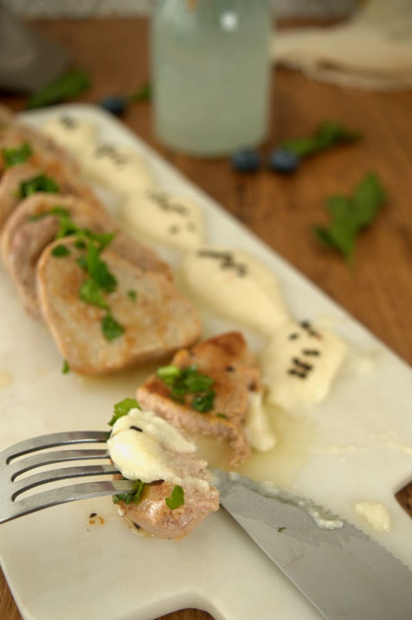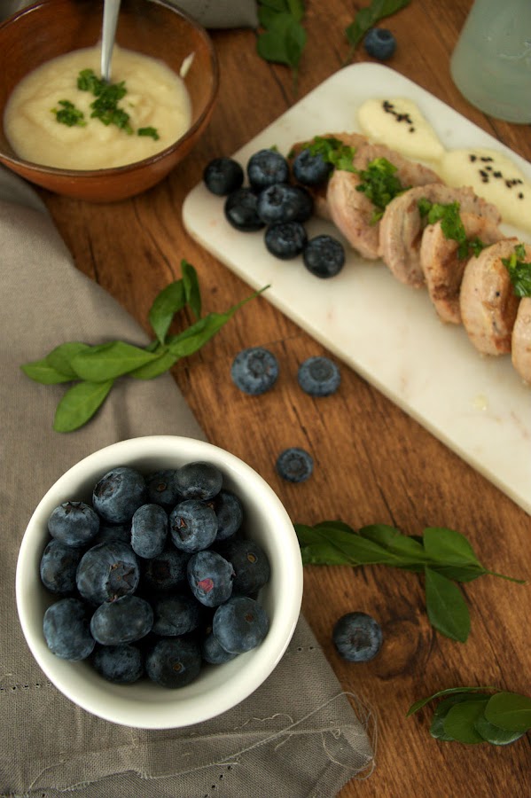 PORK TENDERLOIN WITH YOGURT SAUCE AND BLUEBERRIES