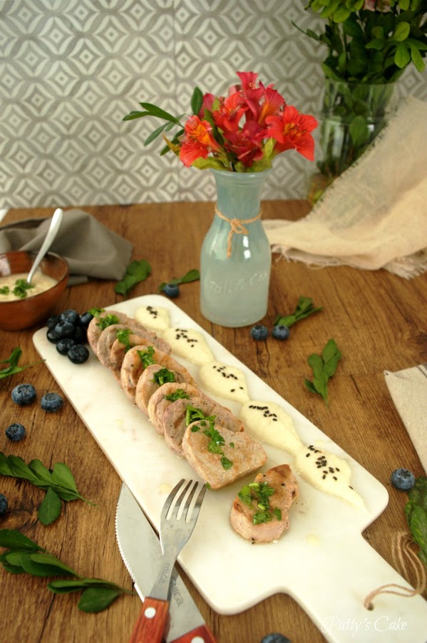 Hace unos días Inma del blog Entre 3 fogones, nos propuso que cocináramos una misma receta todas las chicas del grupo. (Luego os cuento sobre nuestro grupo, jeje). Así que, aquí tenéis este solomillo de cerdo en salsa de yogur al que yo le he puesto unos arándanos frescos porque me encantan los frutos del bosque con las carne.
