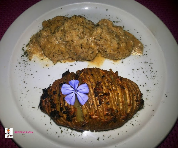 Yo acompañé estar carne con unas Papas (patatas Hasselback)