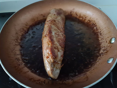4. - Sacamos el solomillo, dejando que la salsa siga reduciendo si no lo estuviera ya, que en mi caso si estaba.... Pincelamos el solomillo, lo cortamos y servimos !!!
