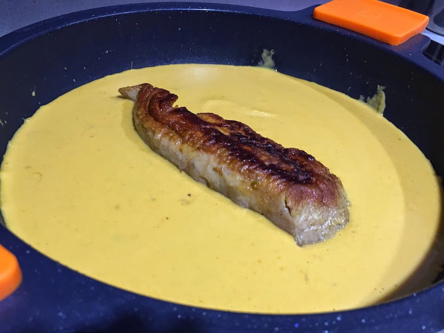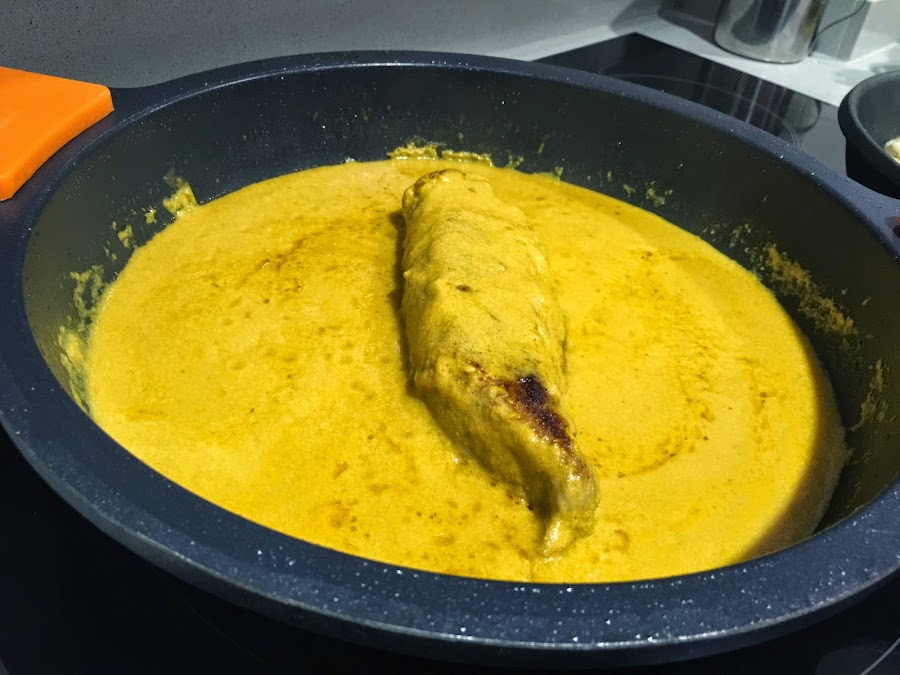 5. Ponemos la salsa de nuevo en la cazuela, el solomillo dentro y a temperatura media cocinamos 20 minutos mas.