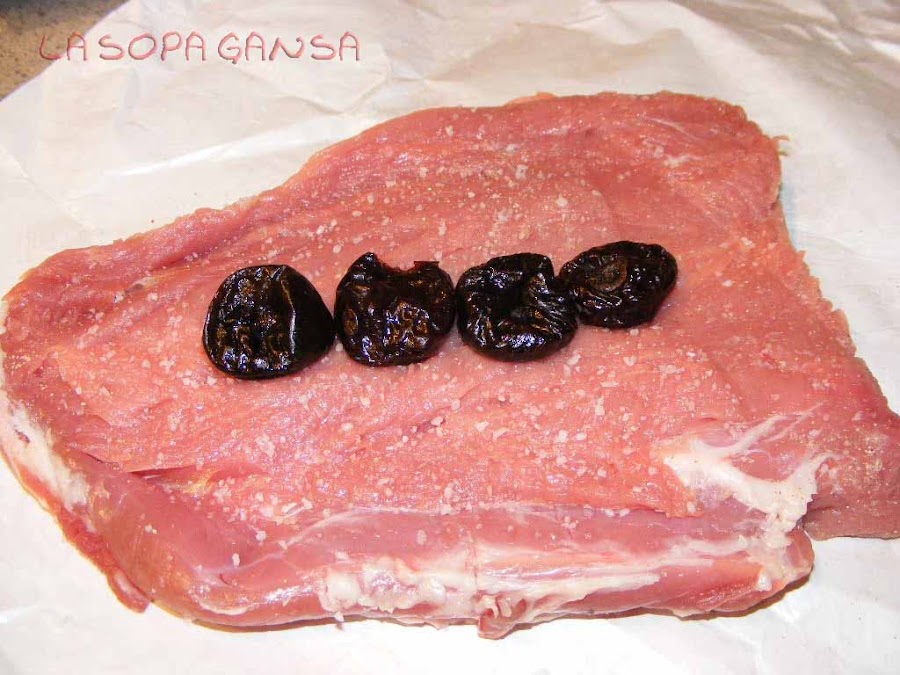Ponemos las ciruelas en primer lugar ( o dátiles sin hueso) esta fruta nos servirá para caramelizar el centro del solomillo