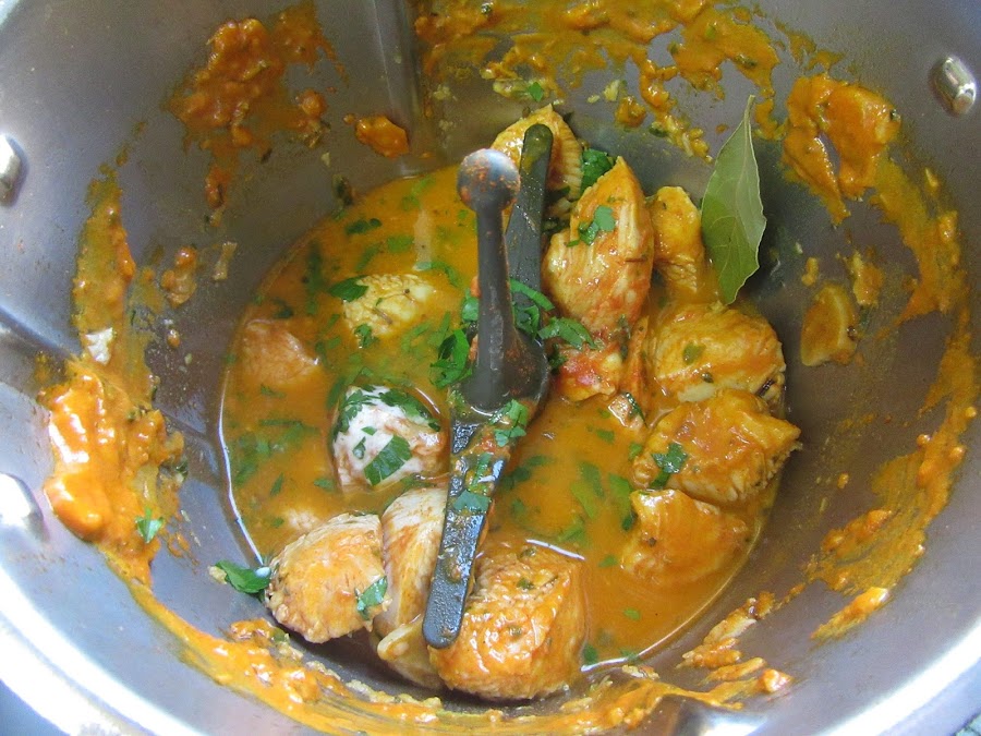 5- Disolver en el agua fría la maizena, añadir al vaso, junto al perejil picado y la hoja de laurel, 8-10 min. Varoma, vel. cuchara. Coloque el cestillo en su lugar para evitar salpicaduras.