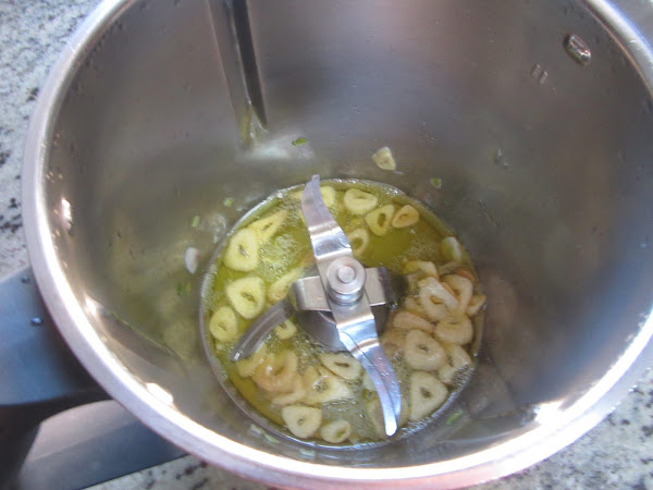 2- Sofría el ajo con el aceite, 10 min., Varoma, vel. cuchara.