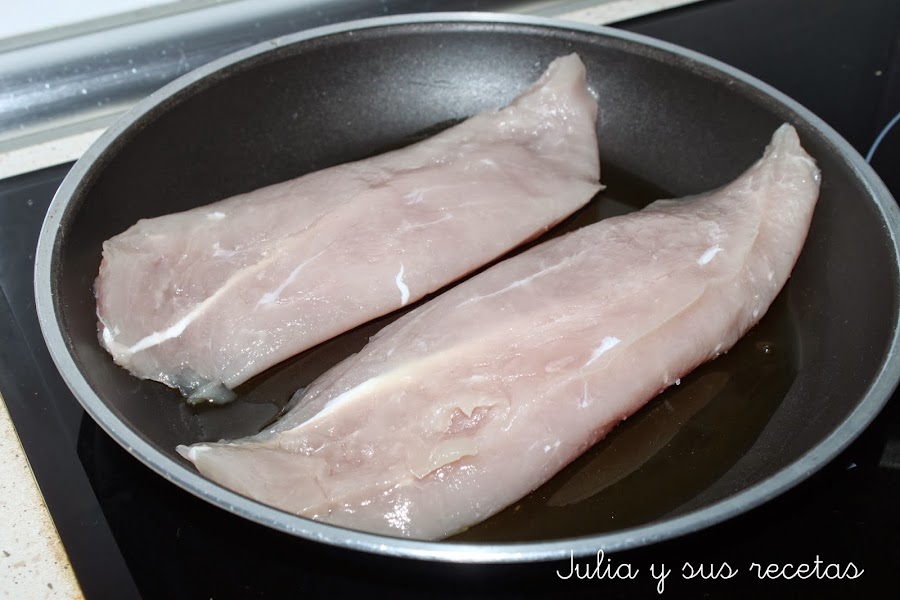 Le ponemos sal a los solomillo y los sofreímos en un poquito aceite.