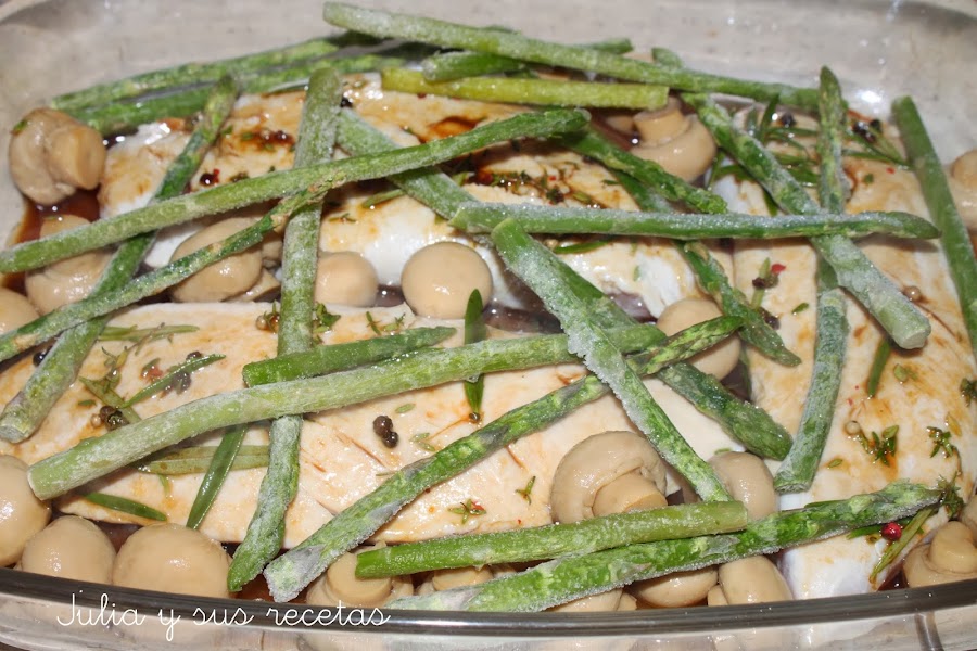 - unos pocos espárragos verdes, (yo congelados)