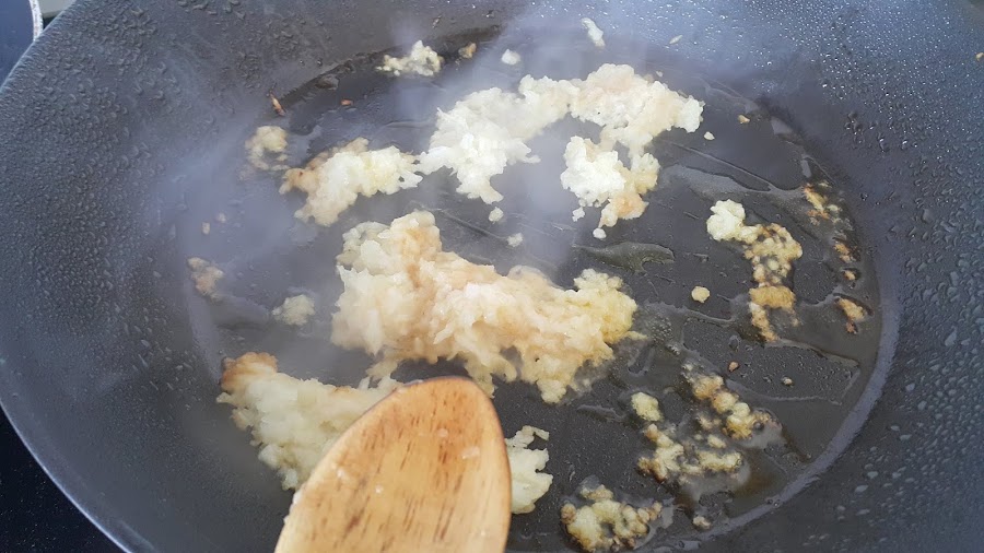 Pelamos y rallamos la cebolla y, una vez marcado el pavo, la sofreímos en la misma sartén a fuego bajo.