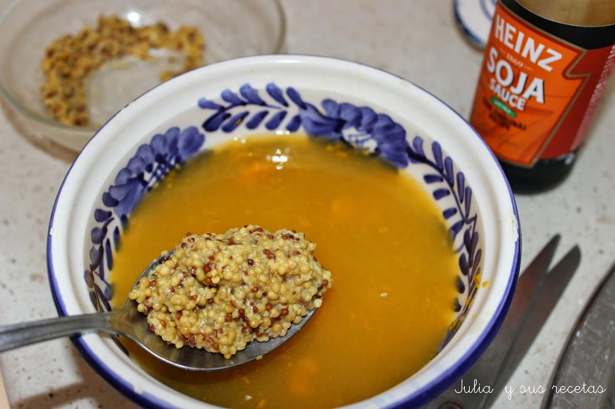 - 1 cucharada sopera de mostaza antigua (la que tiene granitos)