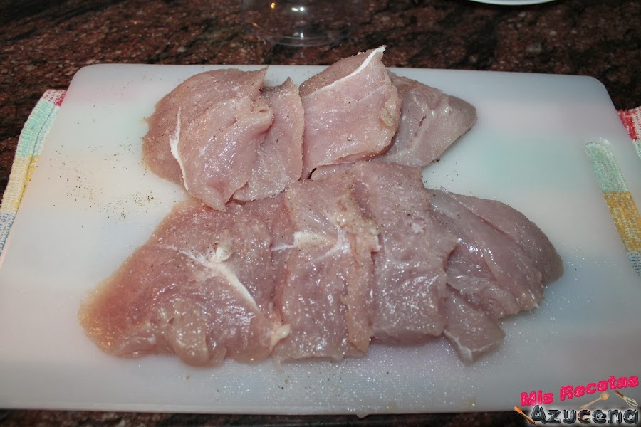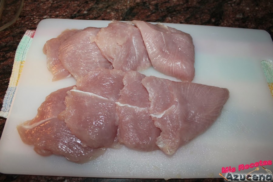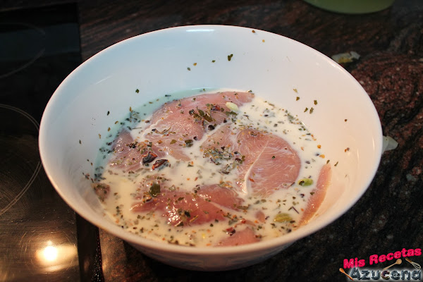 Ahora cogemos los solomillos de pavo y cada solomillo lo cortaremos en cuatro medallones, salpimentamos y los introducimos en el bol donde tenemos todas las especias y la leche.