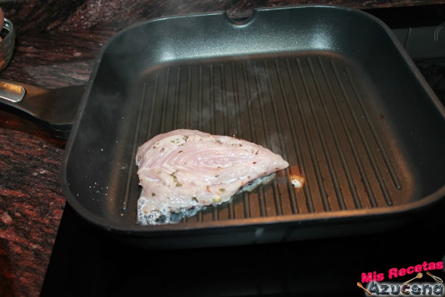 Pasado el tiempo de maceración pondremos una parrilla al fuego a fuego medio, no le pondremos nada de aceite, cuando este caliente pondremos directamente los solomillos.