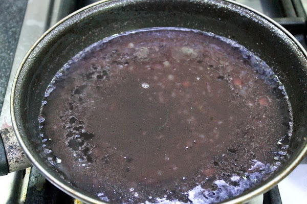 Añadimos el caldo o fondo de carne y dejamos que vaya reduciendo a fuego medio durante unos 20 minutos.