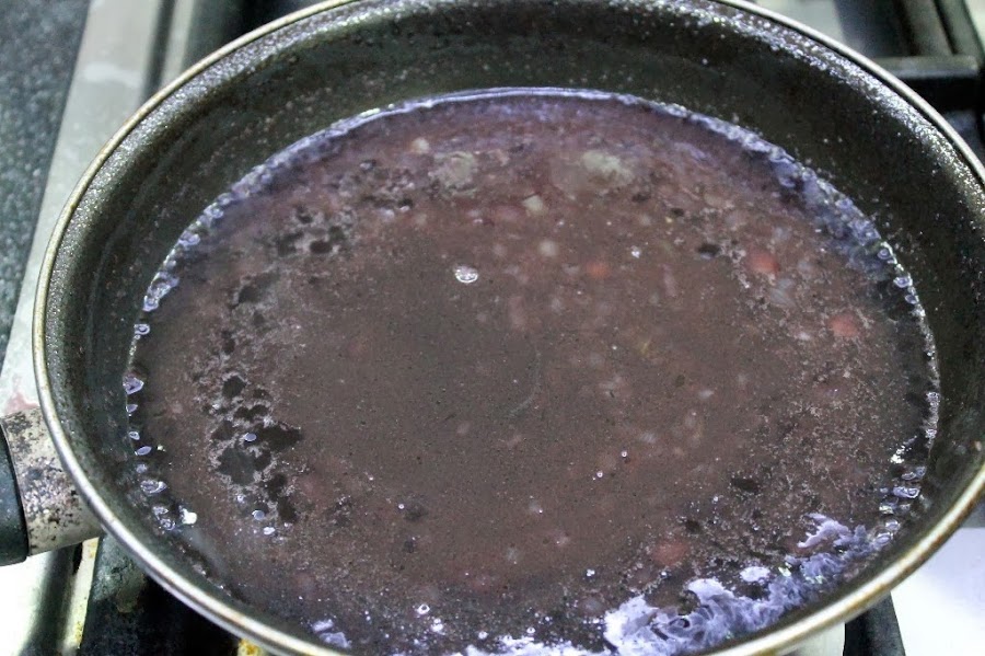 Dejamos otra vez a fuego suave y vamos quitando las impurezas que suban a la superficie, debe quedar una salsa bastante limpia.