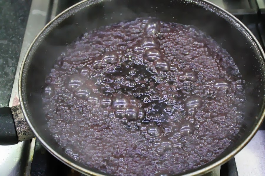 Añadimos el azúcar y el oporto y lo dejamos reducir un poco hasta que empiece a tomar la consistencia de un jarabe.