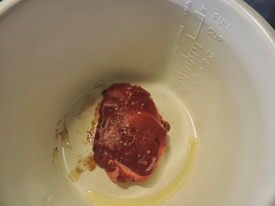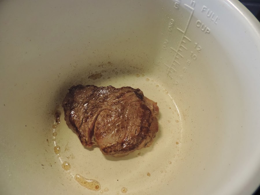 Poner unas gotas de aceite en la cubeta de la olla para hacer el solomillo.Programamos la olla: