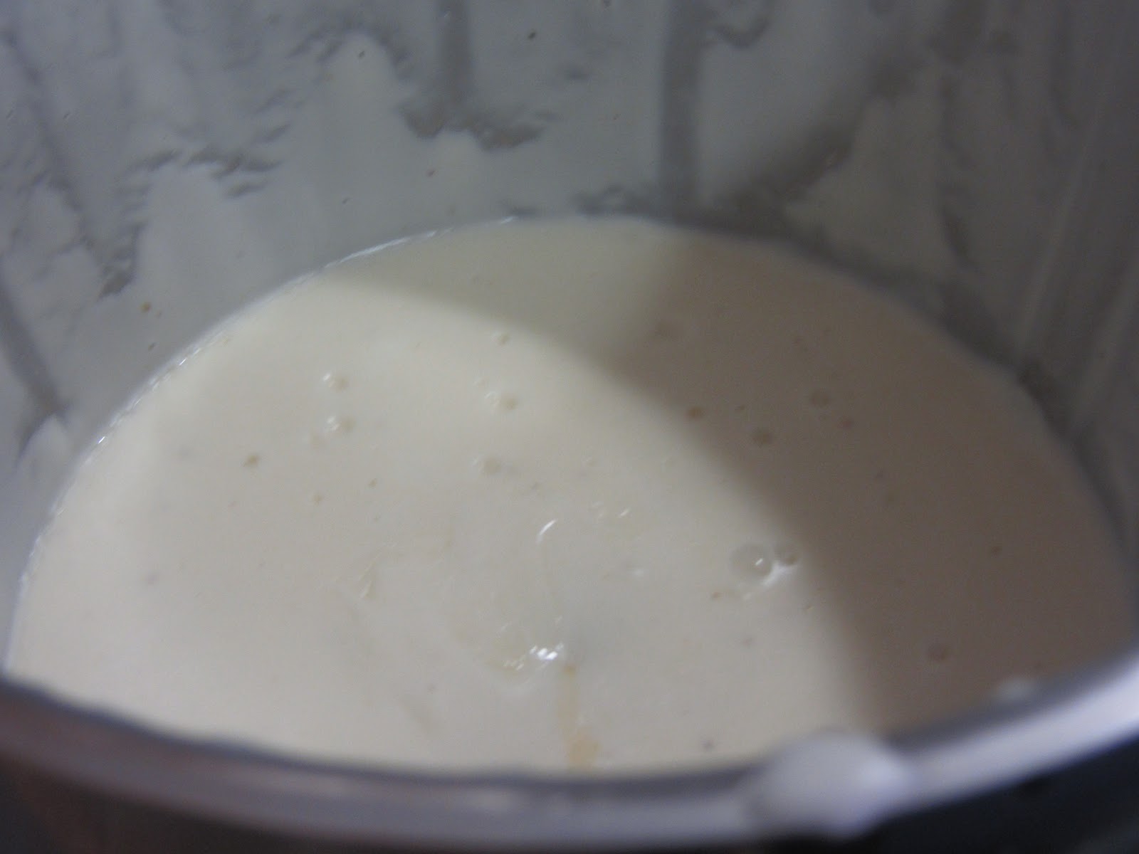 Añadimos la leche, la crema o nata (crema de leche), la sal, la pimienta, la nuez moscada, la harina y la mantequilla. Y programamos 7 minutos, temperatura 90º, velocidad 4.