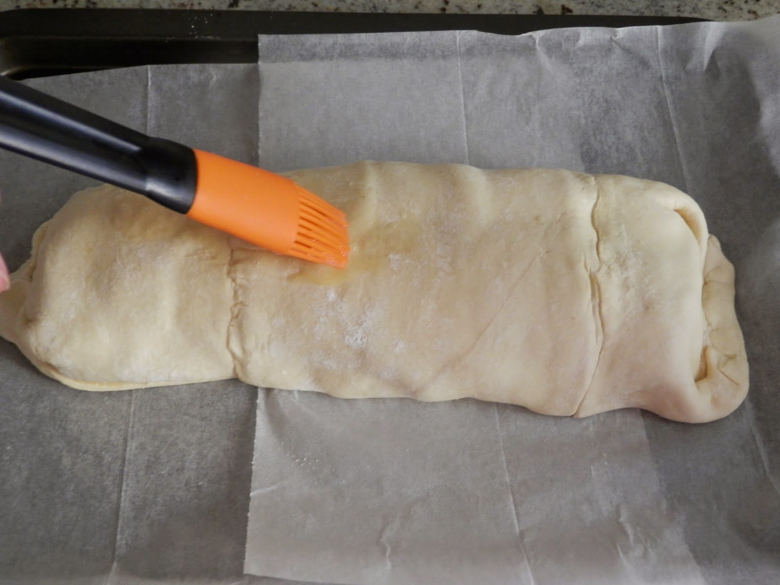 6. Batimos el huevo y pintamos toda la superficie del hojaldre ya cerrado.