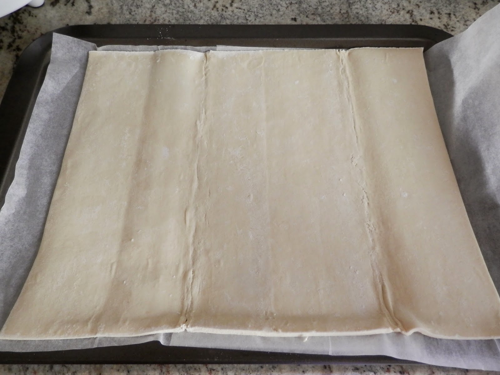 3. En la hoja de hojaldre, se extiende el paté de forma que quede uniforme por toda la superficie. Este es un paso opcional, en ocasiones pongo el paté y en otras no, con paté es un poco más pesado, queda rico, es un paso que depende de cada uno.