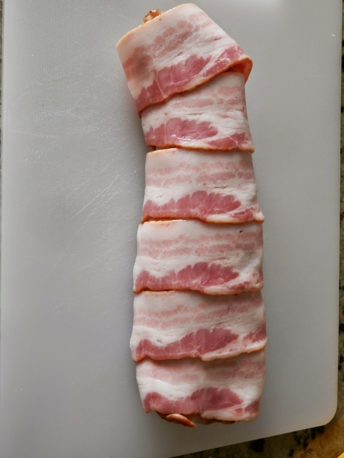 4. El siguiente paso es forrar el solomillo con el queso y el bacon.