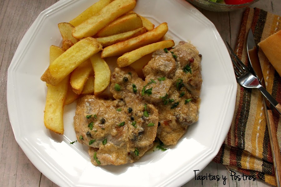 Servimos espolvoreado con perejil picado y acompañamos de unas patatas fritas.