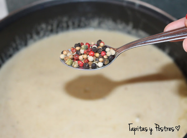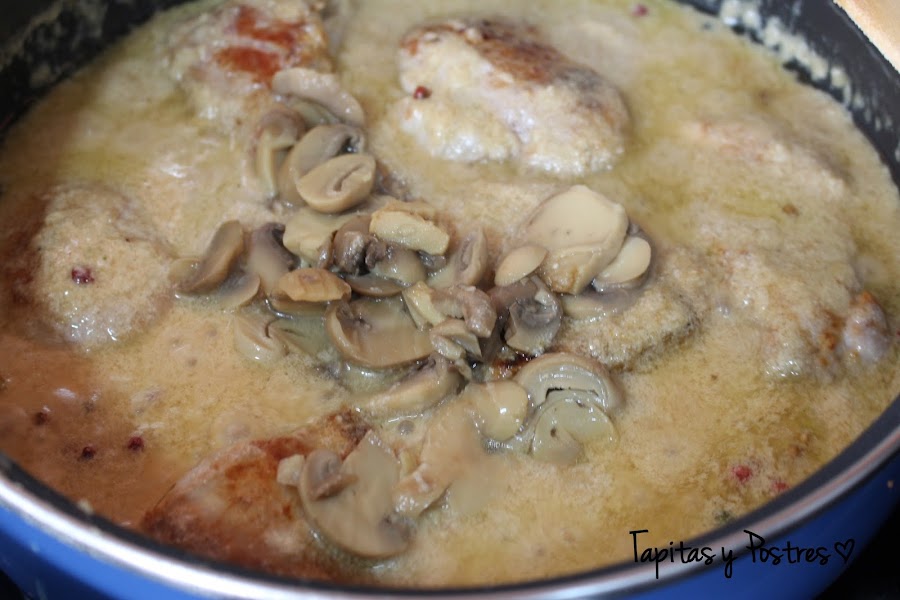 1 cucharadita de mix de pimientas 5 bayas (o cualquier otra que os guste)1 lata de champiñones laminadossal y pimienta al gusto