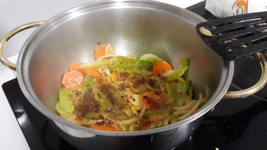 3.- Las añadimos a la sartén y las pochamos a fuego medio