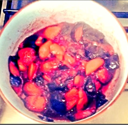 Para realizar la salsa de ciruelas utilizaremos 4 ó 5. Simplemente retiramos el hueso de las ciruelas, las troceamos y las ponemos en un cazo a fuego lento, vamos removiendo hasta que se deshagan y se quede textura de compota.