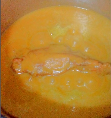 Volvemos a poner el solomillo en la olla con la salsa ya triturada y dejamos a fuego lento, con la olla destapada, que a salsa reduzca un poco.