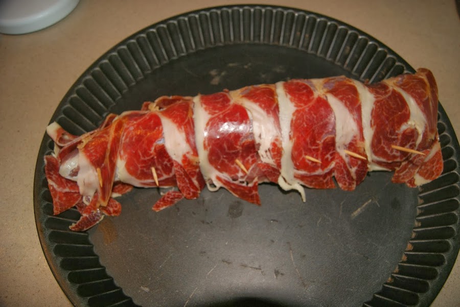 Lo mismo para el Jamón y el chorizo. Yo he usado un chorizo con mezcla de venado, pero la cuestión es que sea fresco para poder manejarlo bien para rellenar el mechador.