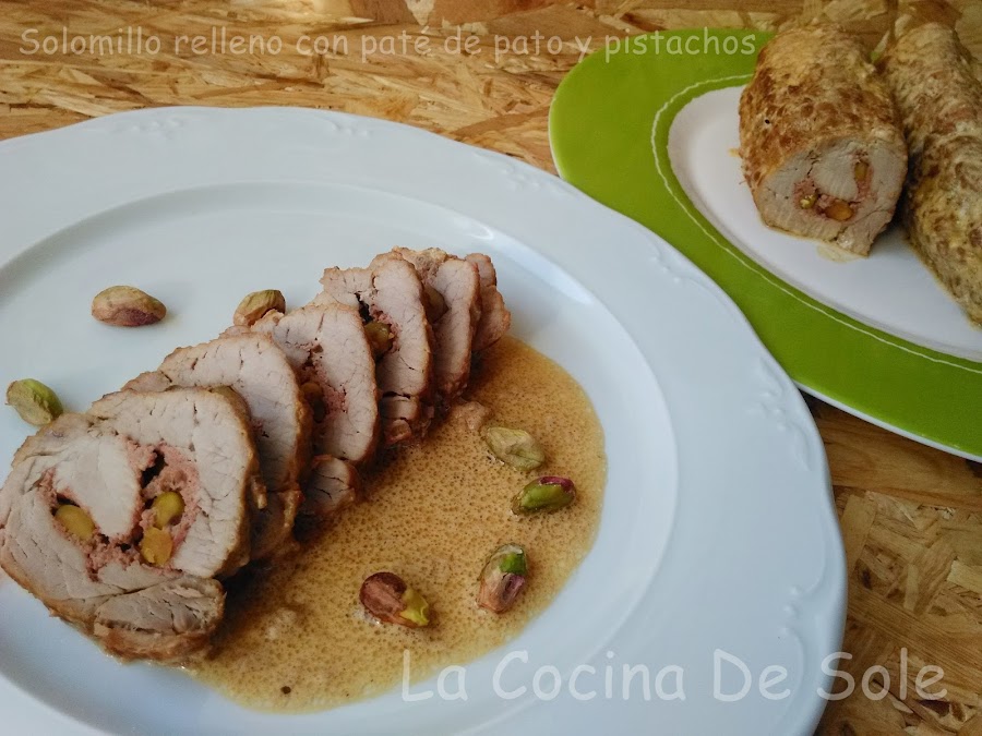 Un solomillo, relleno de paté de pato, que le da un sabor exquisito a la carne y que junto con los pistachos queda increíble.