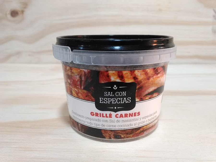 He utilizado, sal con especias grillé carnes, de fossil river, proporcionado por “Sal gourmet”. Es una sal de de río con especias para condimentar todo tipo de carne, especialmente cocinada al grille o barbacoa.