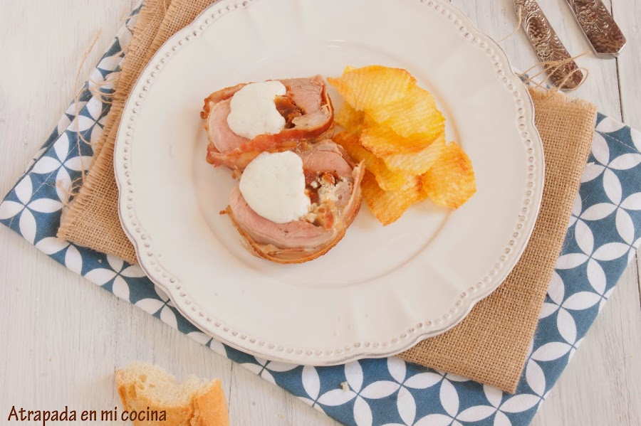 Entramos en la semana previa a la Semana Santa, por lo que ya tenemos que ir olvidando los platos de carne en nuestra dieta,y dando paso a otros platos más acordes con la Cuaresma, pero antes os quería dejar esta idea. Ya he comentado en varias ocasiones que el solomillo de cerdo tengo que tomarlo disfrazado, ya que no es una de mis carnes favoritas. Este tipo de preparaciones es de las que triunfan siempre en la mesa. La elaboración no es nada complicada ni laboriosa, además es un plato que podemos preparar con antelación y una vez que lo llevemos a la mesa, calentarlo un poco o presentarlo sin calentar. En esta ocasión he querido acompañarlo de unas patatas chips, también fáciles de preparar, cortadas con la mandolina, para darle el efecto ondulado de las comerciales. Y para terminar el conjunto el vino, otro de los grandes vinos granadinos, el Muñana 3 Cepas, del que os hablo más abajo.