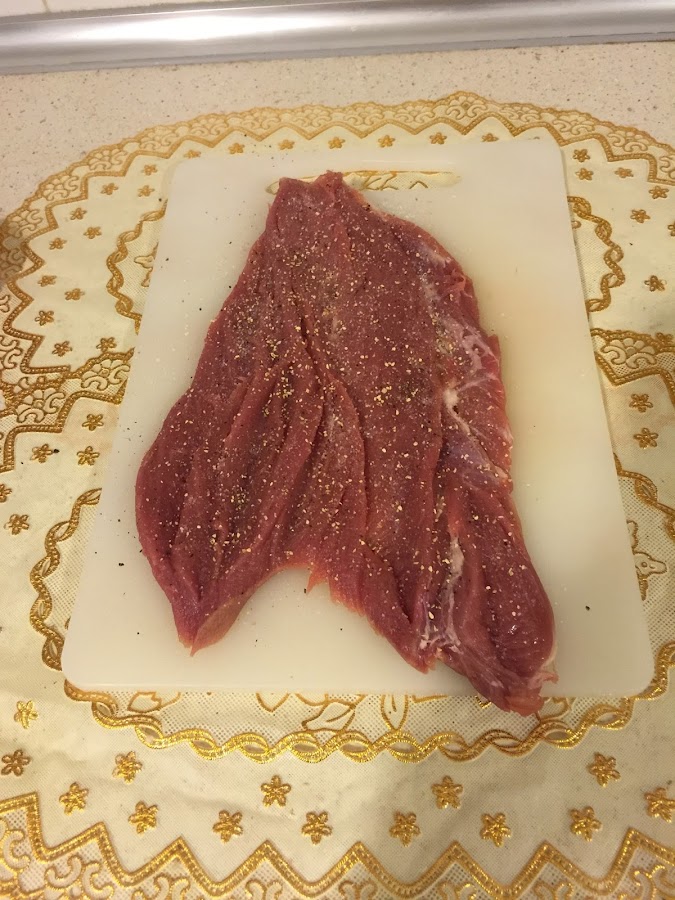 Después lo salamos, le ponemos el ajo (yo use picado deshidratado, pero podes usar fresco cortado en laminas si te gusta mas) y la pimienta.