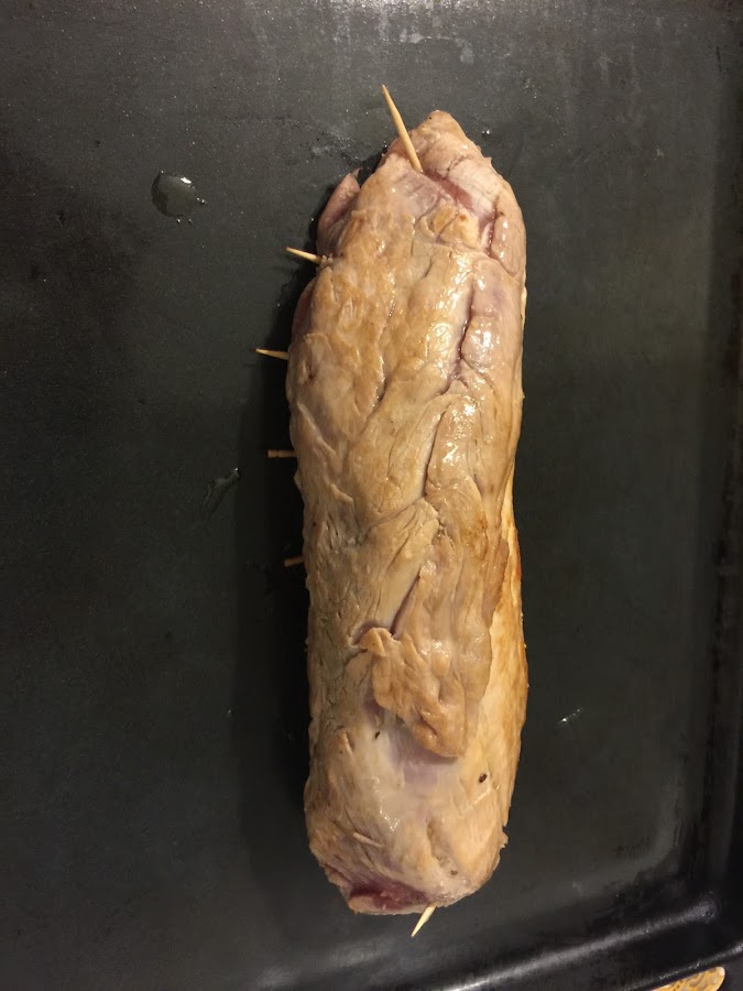 Una vez que esta dorado por todos los lados, lo colocamos en una bandeja para horno y lo llevamos a una temperatura de 200 grados por 20-25 minutos aprox.