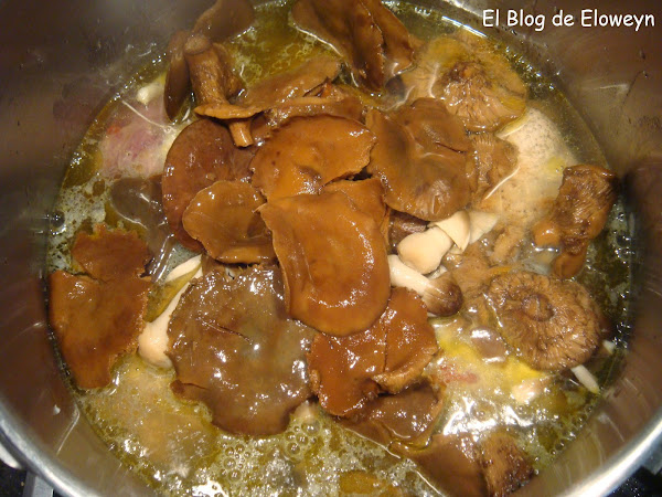 200 gr. de setas. Yo puse níscalos (o rovellons en catalán)