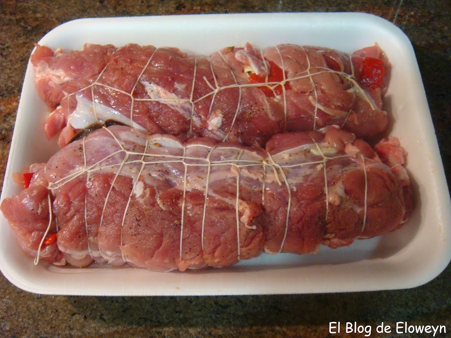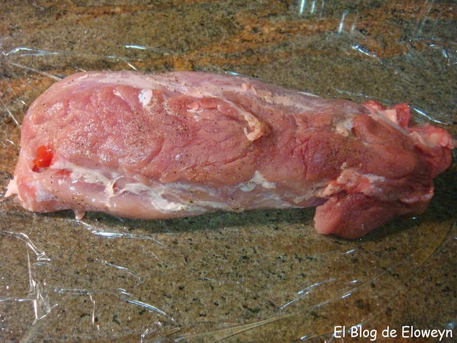 No pensé que sería tan fácil rellenar un solomillo... De hecho, cuando compré el solomillo pensé que sería poco y pedí dos... o sea, ¡¡¡que tuve que atar dos!!!. Esto de tener que atarlo pensaba que sería más complicado, pero nooo!!! jajaja. Se miran unos cuantos vídeos por Youtube y andando... jajaja
