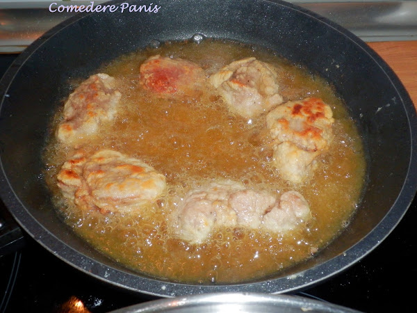 Freír con abundante aceite a fuego fuerte, solo vuelta y vuelta para que se dore la harina pero queden tiernos por dentro. Luego reservar en una cacerola.