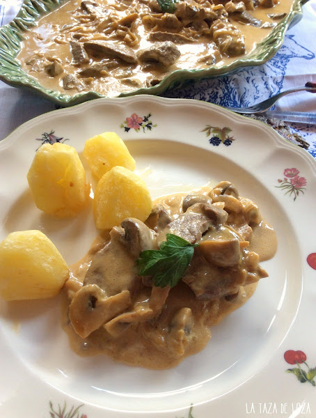 Se suele servir con arroz blanco, pero yo preferí patatas hervidas y luego fritas.Nada más, es un plato muy sencillo y que cuando lo terminas te quedas encantada de lo sencillo y de la apariencia que tiene, en casa nos encantó.