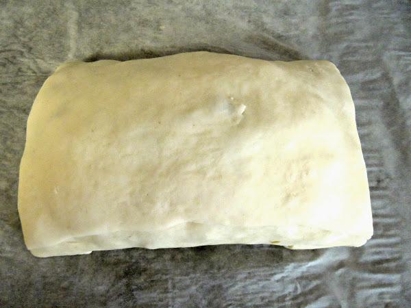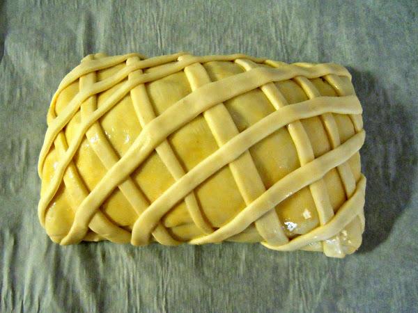 Con el trozo de masa que cortamos al principio yo hice tiras más finas y las usé como adorno, podéis hacer formas con los corta pastas, espirales, rejillas... lo que se os ocurra para decorarlo. Lo volvéis a pintar con huevo y a la nevera unos 10-15 minutos en la parte más fría.