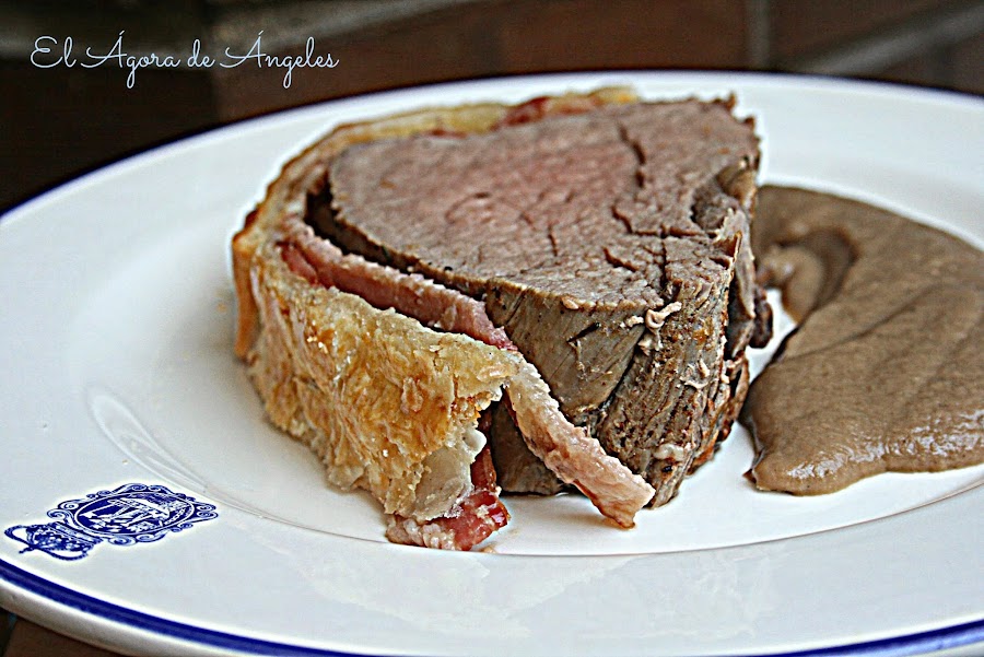 Estiramos la placa de hojaldre ( así que mejor la compramos ya con forma rectangular) de manera que cubra bien la pieza de carne.