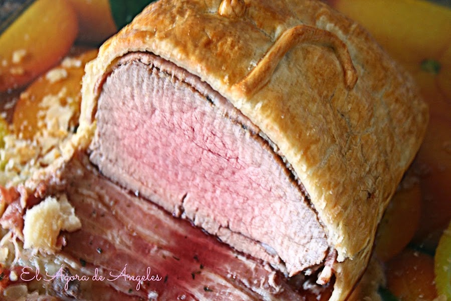 Envolvemos la carne con el hojaldre y cerramos bien.