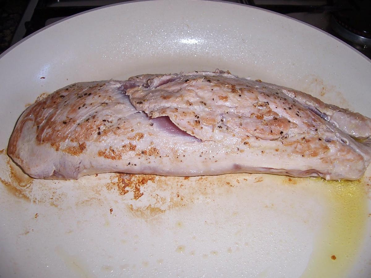 Salpimentamos el solomillo y lo sellamos con un poco de aceite o manteca de cerdo por todos lados.