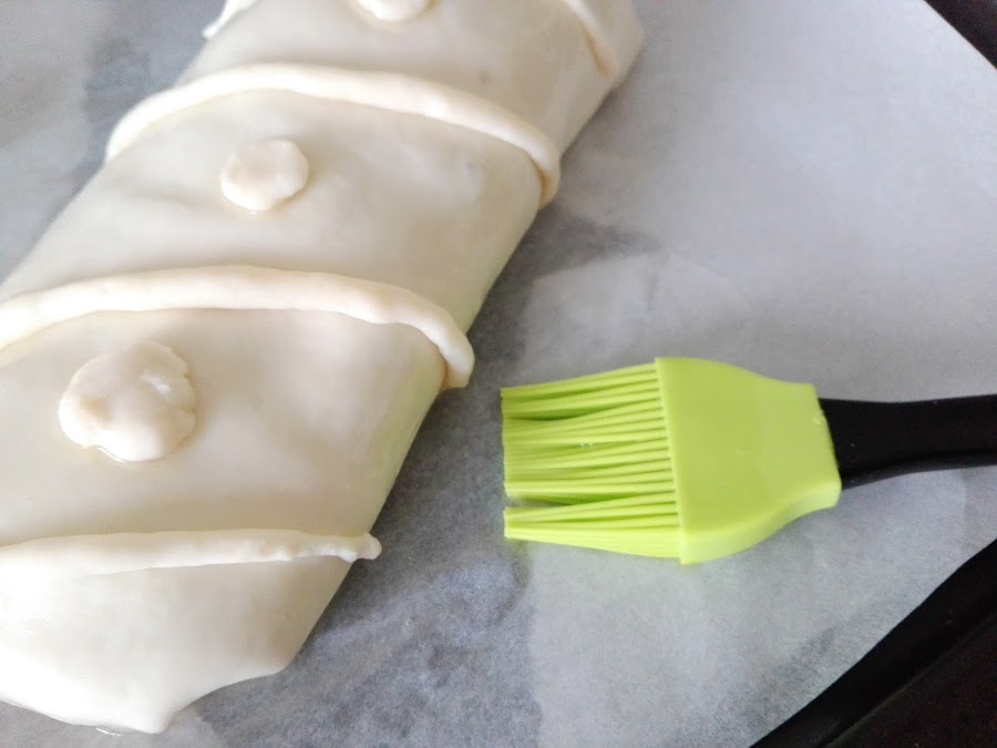 Cerramos envolviendo bien el solomillo con el jamón y después con el hojaldre, decoramos y pintamos con huevo para que se dore bien el hojaldre en el horno.