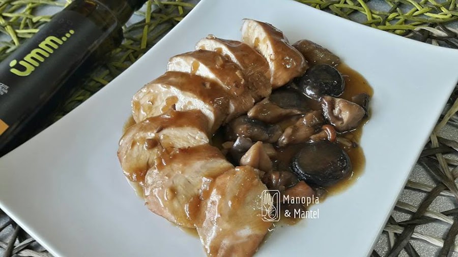 Añadimos agua y dejamos cocer hasta que estén tiernos los solomillos y la salsa quede espesita.