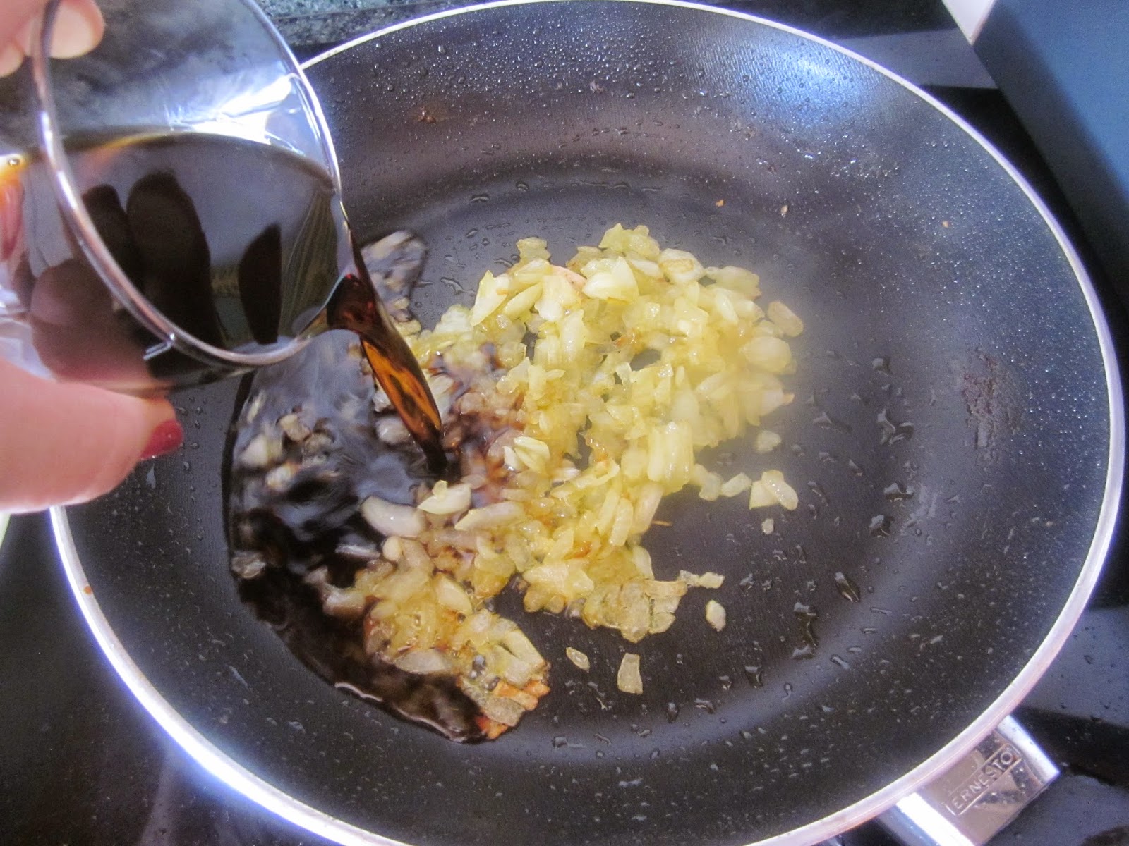 Cuando tengamos el punto deseado añadimos el vasito de vino y dejamos unos minutos cociendo que evapore el alcohol.