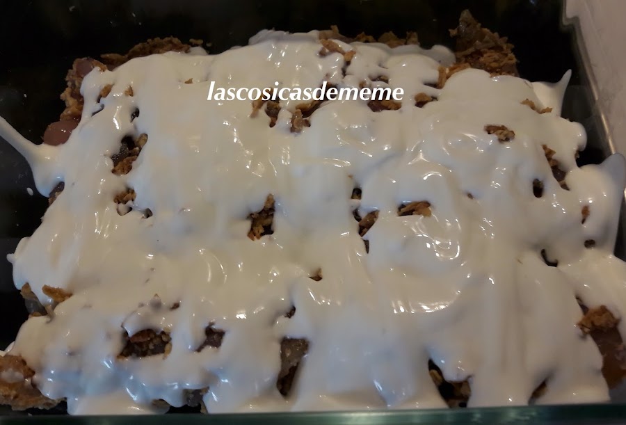 Rebozarlas con la sopa de cebolla, cubrir con la nata (crema de leche) tienen que quedar cubiertas.