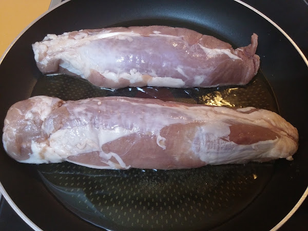 Doramos los solomillos en una sartén con un chorreón de aceite y reservamos.