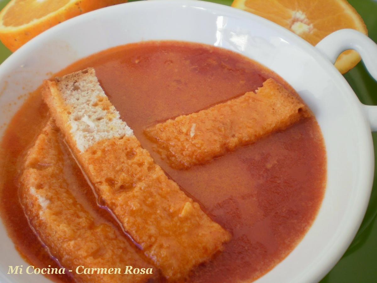 Lo que sí creo, he llegado a la conclusión de que es sencillamente una variante de un gazpacho, de aquellos platos de la época romana o árabe que aún no conocían el tomate, que se toma caliente?.con naranjas de las huertas de Churriana, la mítica Cyriana, aquel lugar que enamoró a los fenicios.