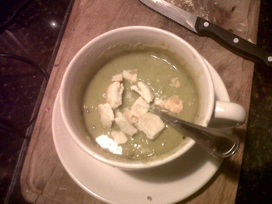 Cortas 2 rodajas de pan integral en cuadritos y volcás en una sartén con lagunita de aceite con ajo y sarteneás lento hasta dorarlos